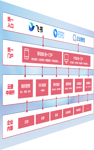 对协作平台提供支持服务,,支持企业应用与协作平台对接,,,包含组织同步、、、、消息集成、、、待办集成等。。支持目前主流的协作平台:钉钉、、企微和飞书。。。。